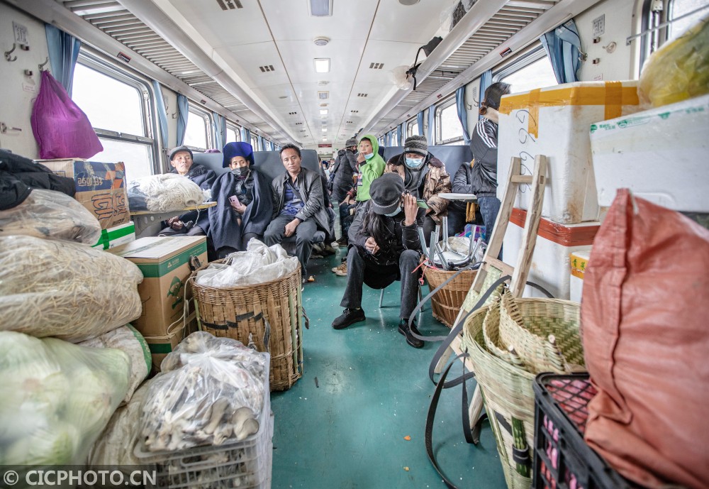 ↑成昆线上攀枝花市开往凉山彝族自治州越西县普雄镇的5634次列车内部。CICPHOTO/刘国兴 摄