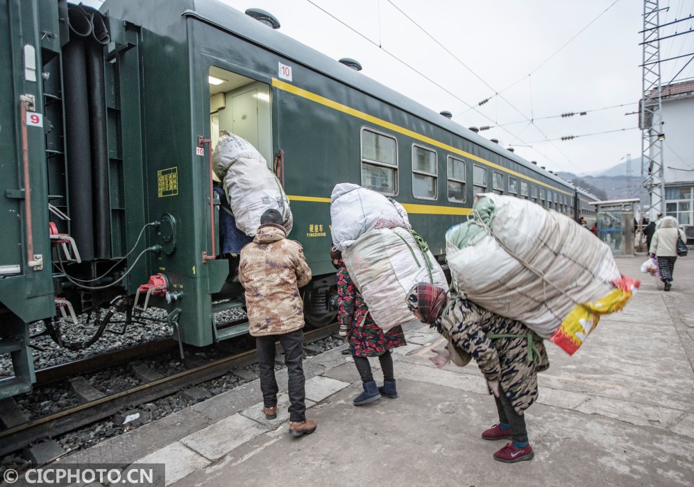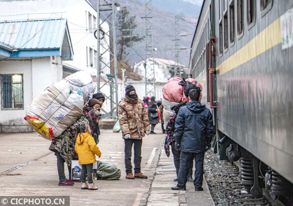↑成昆线上攀枝花市开往凉山彝族自治州越西县普雄镇的5634次列车,乘客上车的场景。CICPHOTO/刘国兴 摄