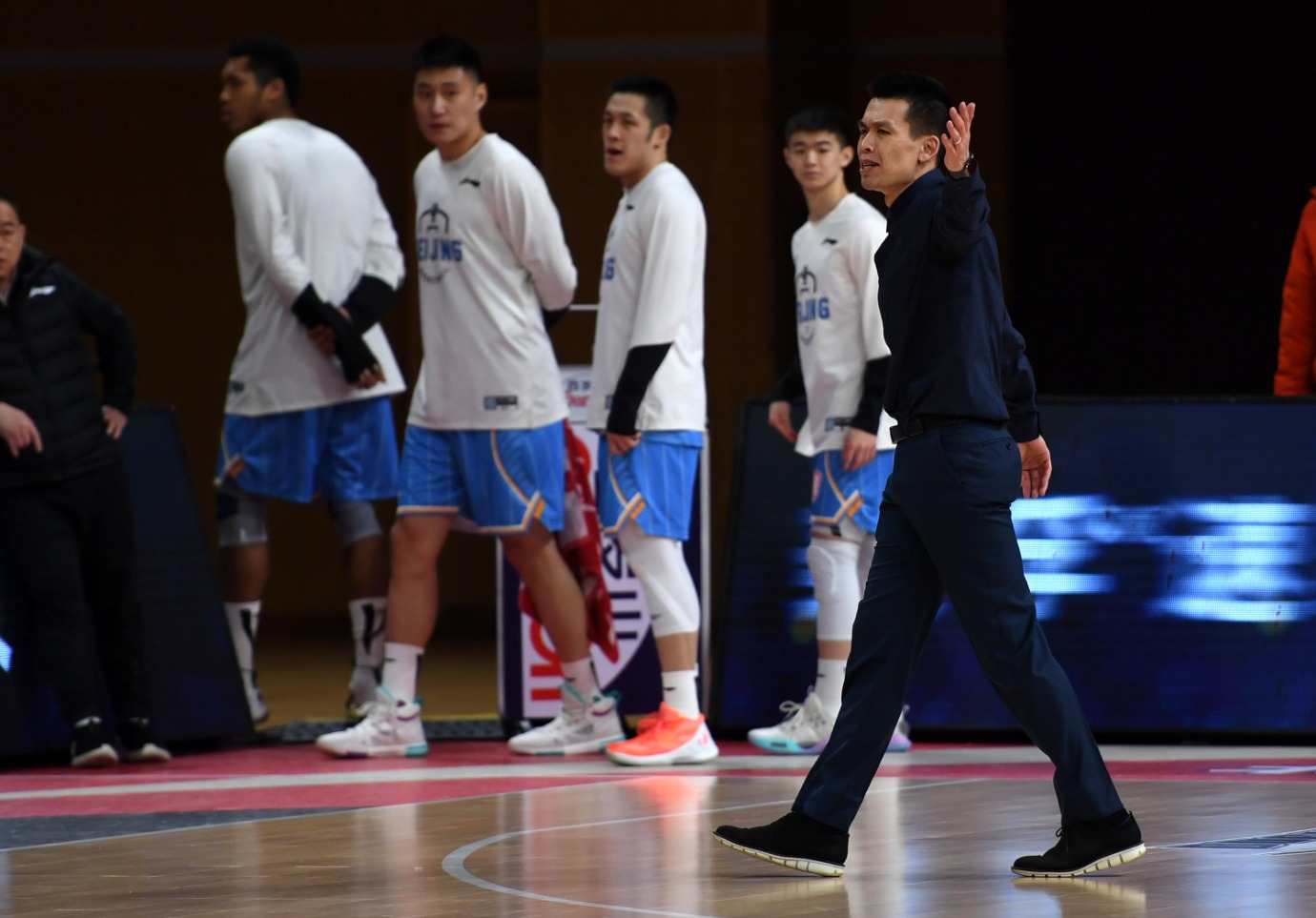 图为 1月10日,北京首钢队主教练解立彬(右一)离场后返回。新华社记者 李紫恒 摄