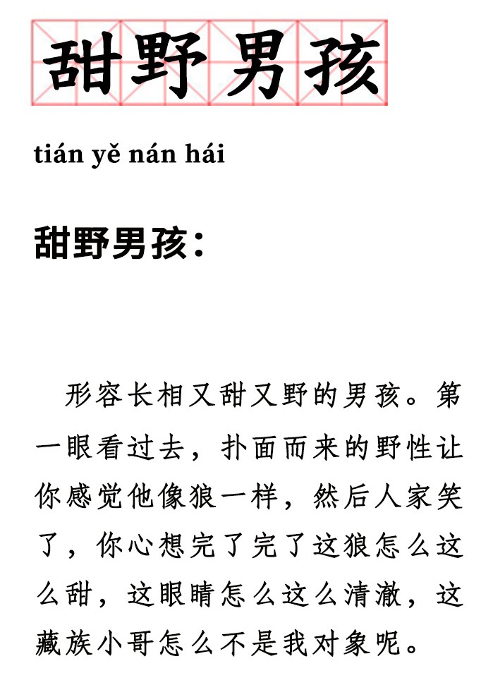 ▲网络热词“甜野男孩”。图片来源:微博用户@语文指挥中心