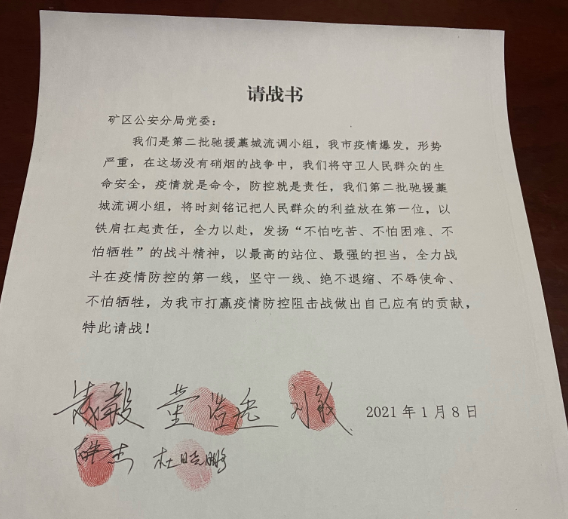 1月8日,得知自己所在的石家庄井陉矿区公安分局,需要抽调熟悉刑侦业务的骨干,组建驰援藁城突击队的消息后,刘敏便主动请缨,第一时间在请战书上按下了红手印。
