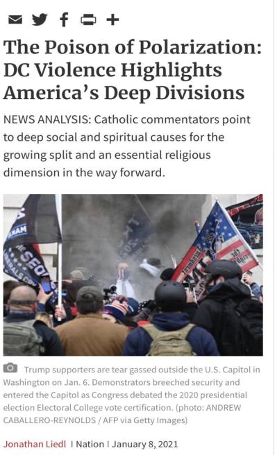 △美国《天主教国民周刊》认为,政治极化是一剂毒药,国会山暴乱凸显了美国分化之深