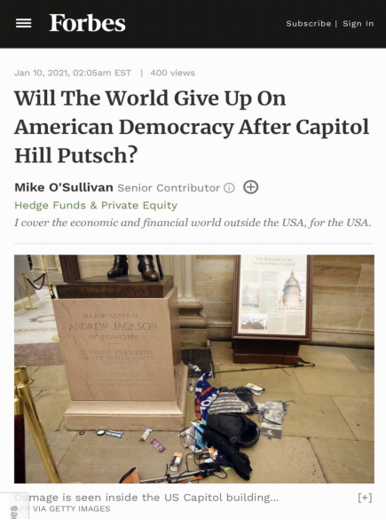 △《福布斯》称,国会山政变后,美国为中心的国际机构彻底失去了批评他国人权问题、腐败问题和政治合法性的道德制高点