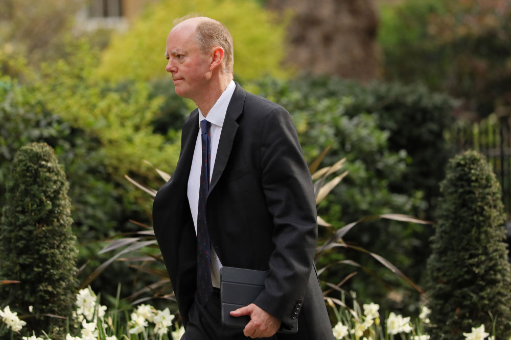 2020年4月8日,在英国伦敦,英格兰首席医疗官克里斯·惠蒂抵达唐宁街。(新华社发,蒂姆·爱尔兰摄)