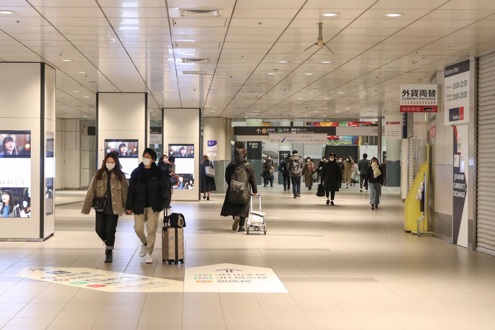 1月9日,人们走在日本东京涩谷车站内。(新华社记者杜潇逸摄)