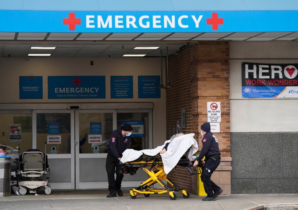 1月1日,在美国纽约,医护人员运送一名患者。(新华社记者王迎摄)