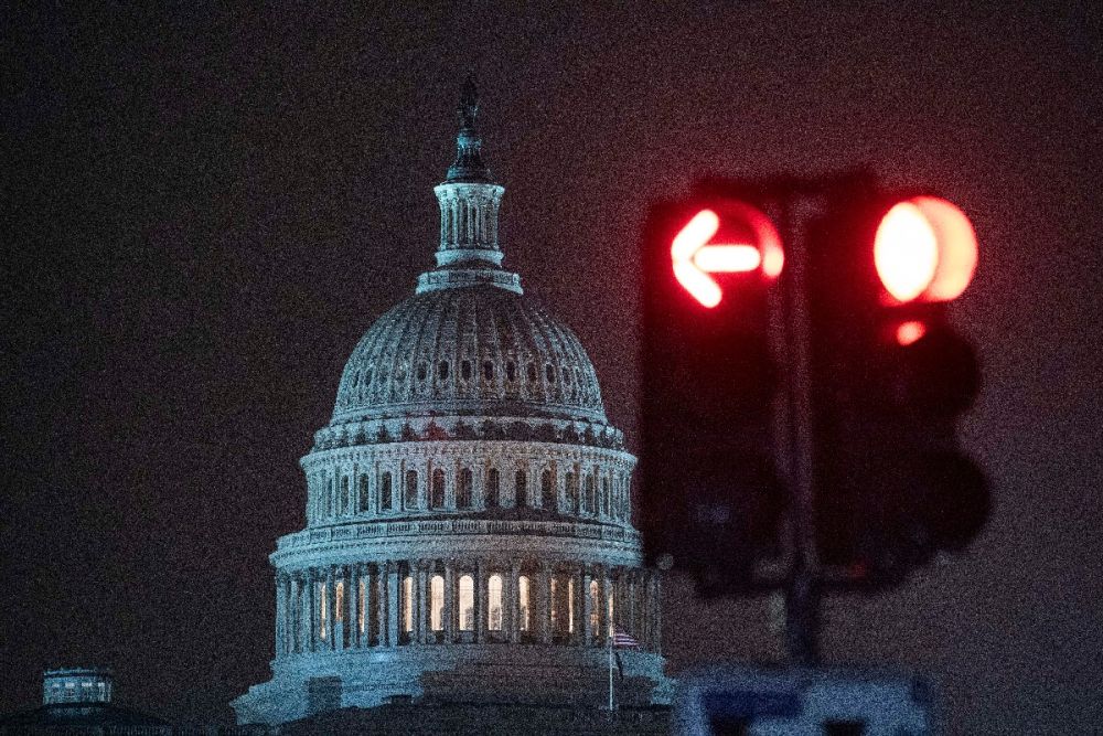 1月1日,位于美国华盛顿的国会大厦笼罩在雨中。(新华社记者刘杰摄)