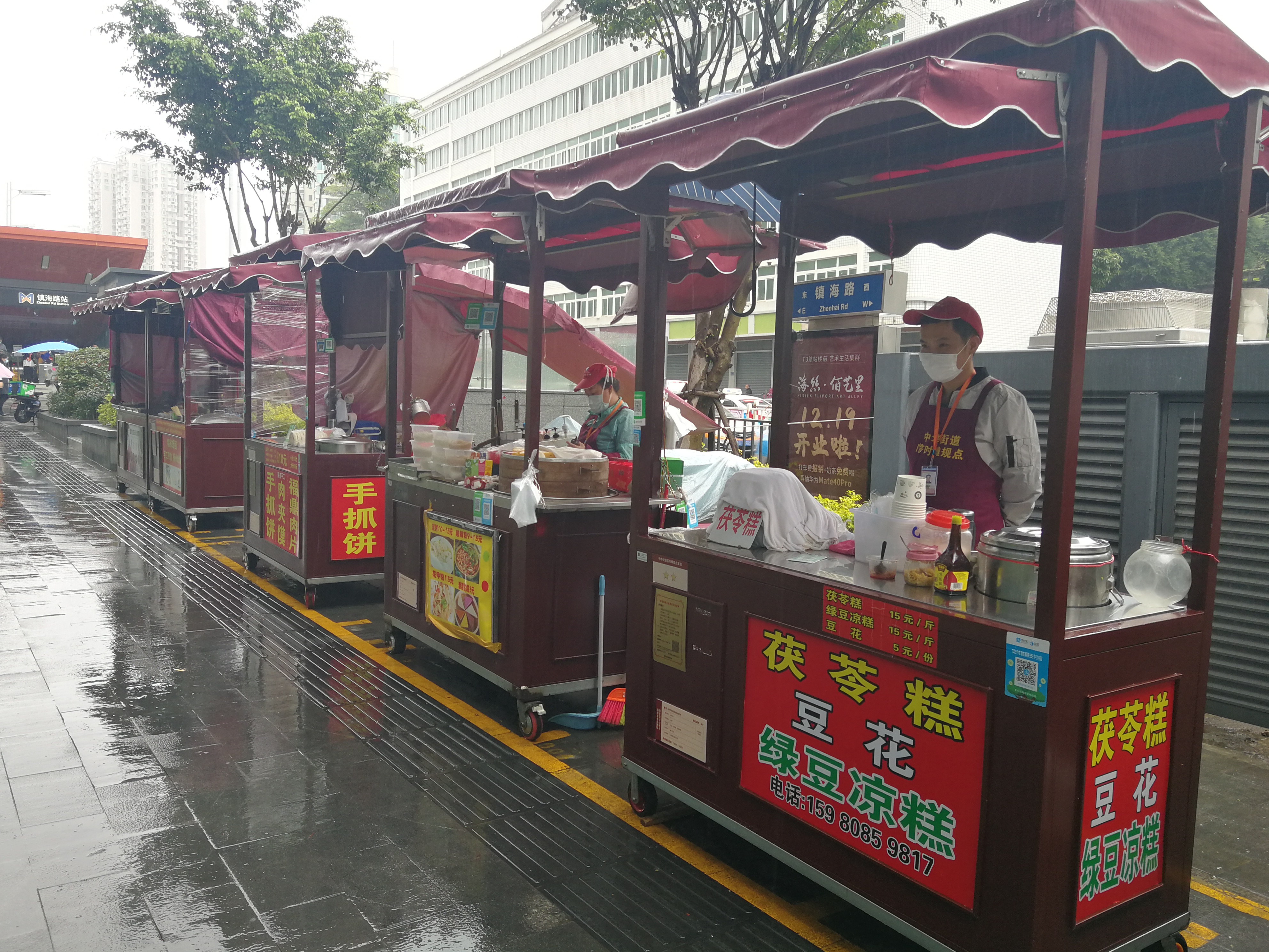 厦门市妇幼保健院门口,小摊贩在指定的“摊规点”区域贩售。(胡见峰 摄)
