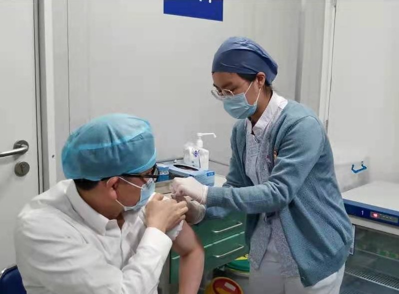 张文宏接受第二剂新冠疫苗注射。(图片来源:华山医院)