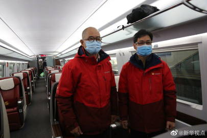 【再次出征!#广东中医专家驰援河北抗击疫情#】广州中医药大学副校长、广东省中医院副院长张忠德和广东省中医院重症医学科大科主任邹旭12日乘坐G2056次列车从广州出发,作为国家中医药管理局应对新冠肺炎疫情防控工作专家组成员驰援河北邢台。2020年援鄂抗疫期间,两位专家通过以中医为主的中西医结合治疗方案,在武汉救治新冠肺炎患者。(记者徐弘毅)