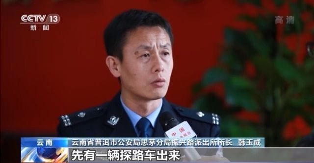 云南省普洱市公安局思茅分局振兴路派出所所长 韩玉成:他先有一辆探路车出来,探路车出来以后到景洪的无人路段,然后他车子开着过去,因为路灯也没有,如果是你后面有车子跟随着他,他一眼就能看出来。去到无人路段以后,他是在一个隐蔽的地段先等着,拉货车出来也是按照同样的路线。