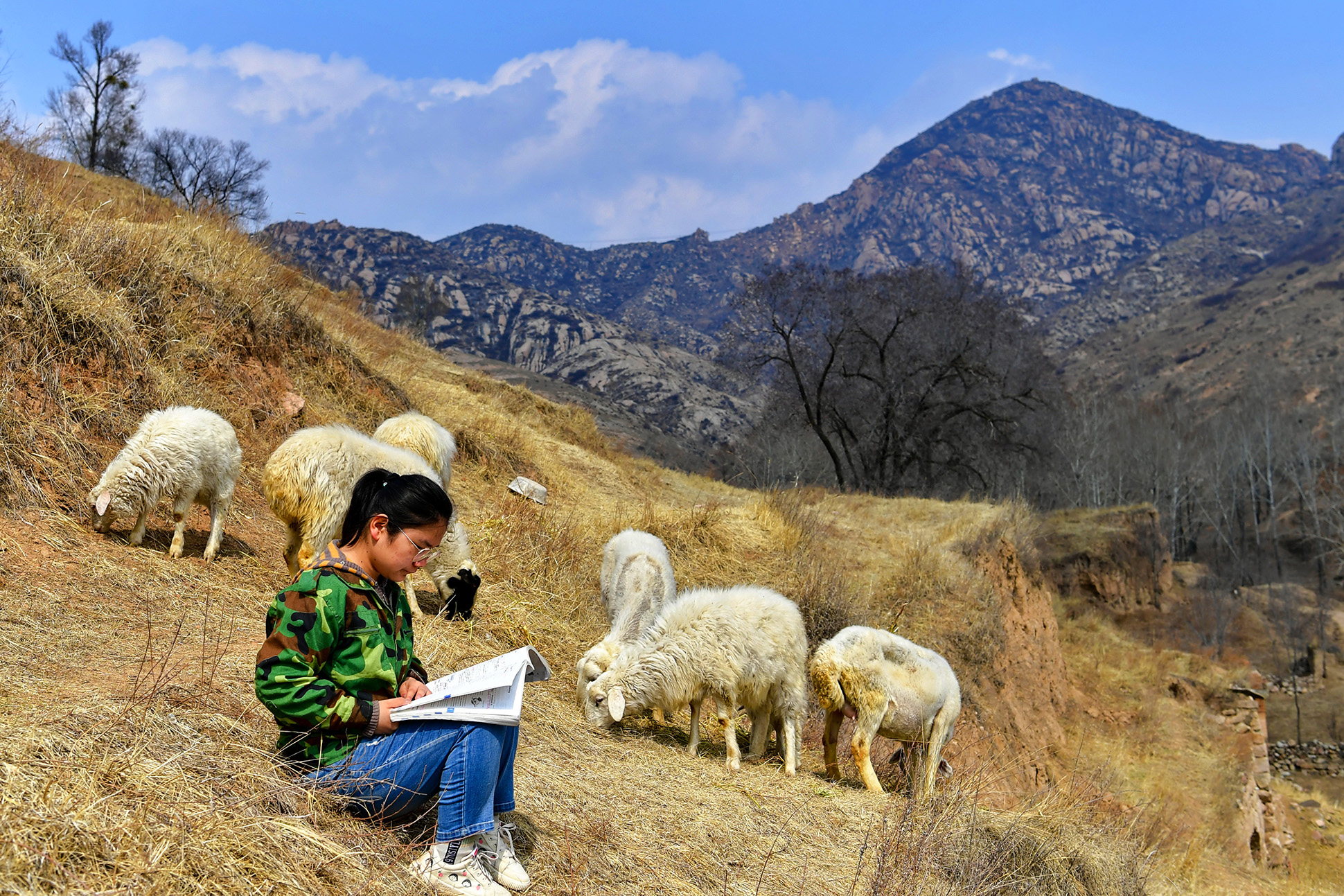 ▲2020年3月24日,李彦昀在山西省静乐县新开岭村的山坡上一边放羊一边复习功课。李彦昀一家人过去是村里的建档立卡贫困户,2019年底顺利摘下“穷帽子”。“考上一所好大学”成了她和家人2020年共同的期盼。随着新冠肺炎疫情得到控制,3月25日,山西省高三年级正式开学复课。李彦昀和同学们回到校园,为高考做最后冲刺。