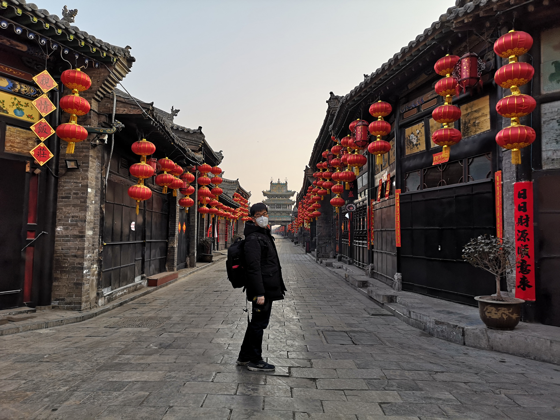 ▲疫情期间,新华社记者曹阳在平遥古城采访。