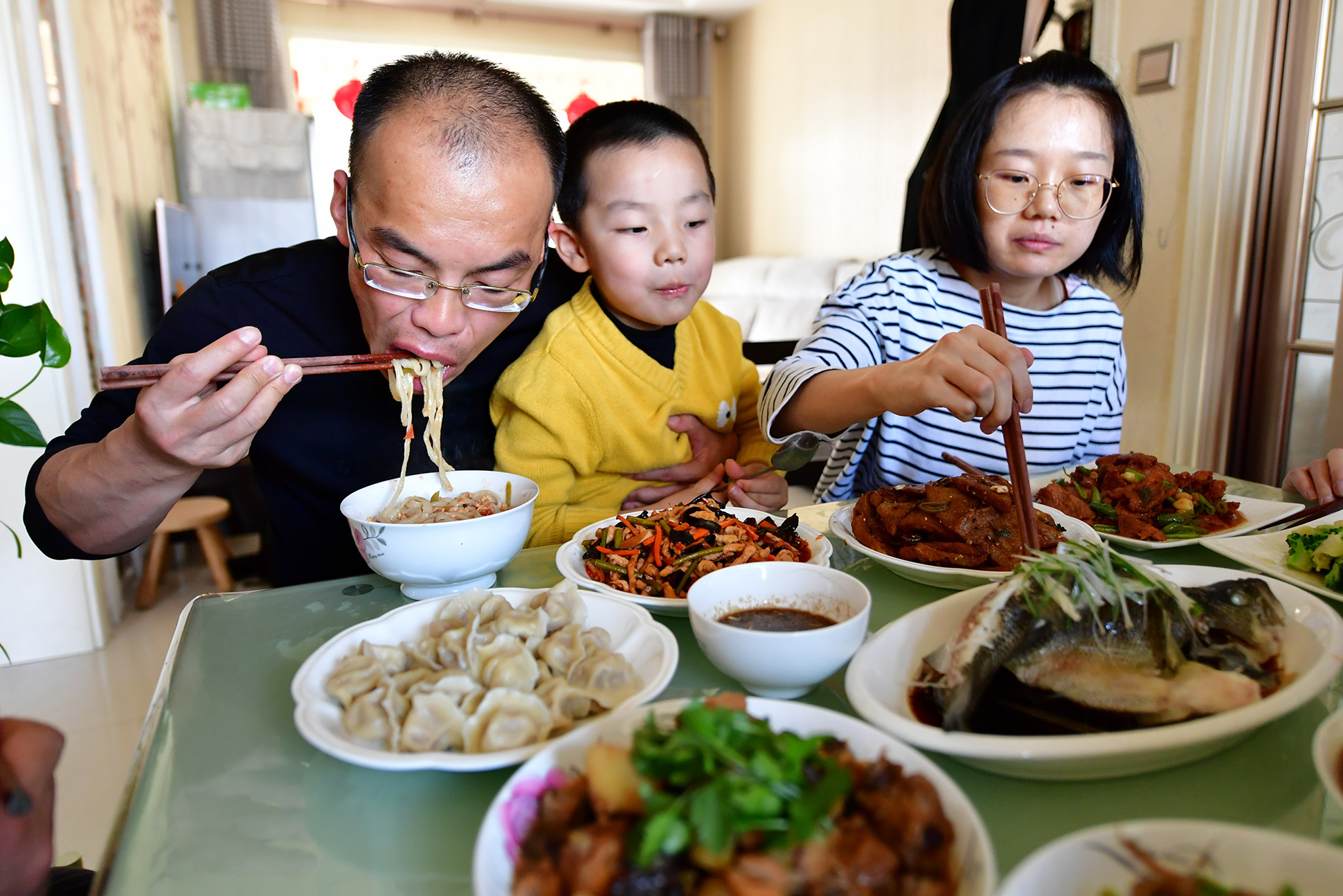 ▲2020年4月11日,郝铁蛋(左一)在和家人吃团圆饭。