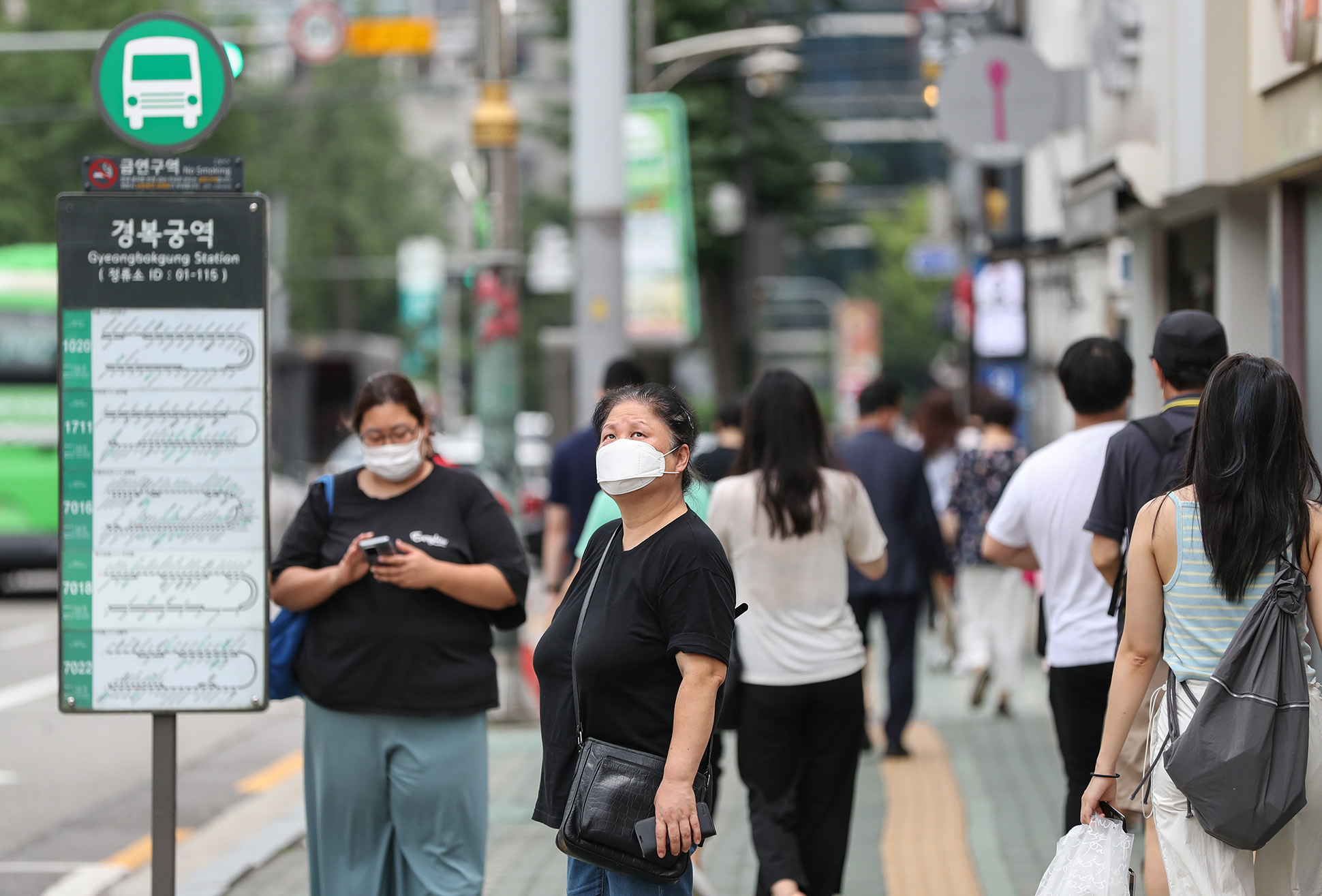 ▲2020年8月25日,在韩国首尔,人们戴口罩等公交车。韩国首都首尔自8月24日起开始强制民众戴口罩,以遏制新冠病毒在首尔及其周边地区快速蔓延。