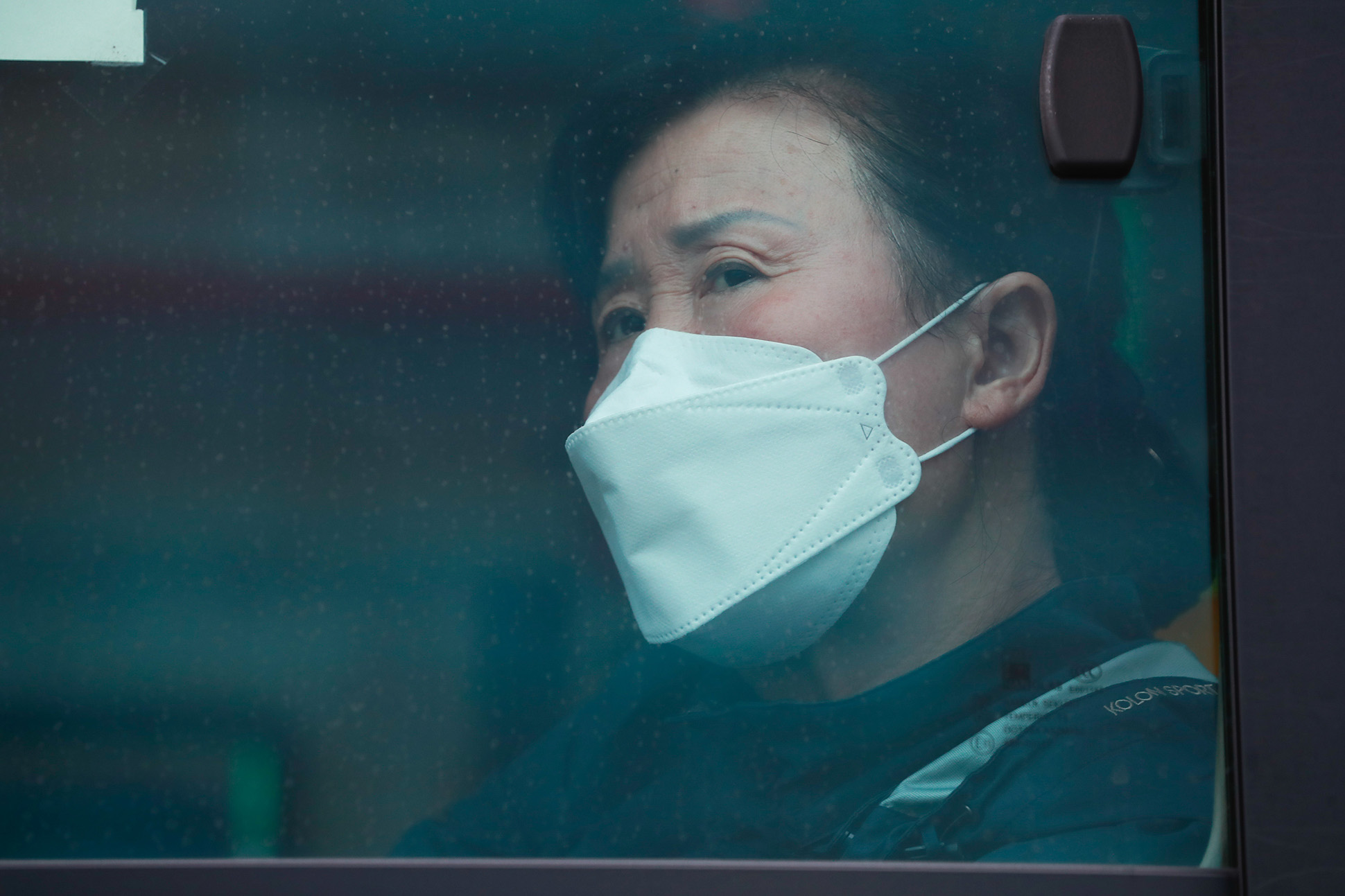 ▲2020年9月29日,在韩国首尔,一名戴口罩的女子坐在公交车里。