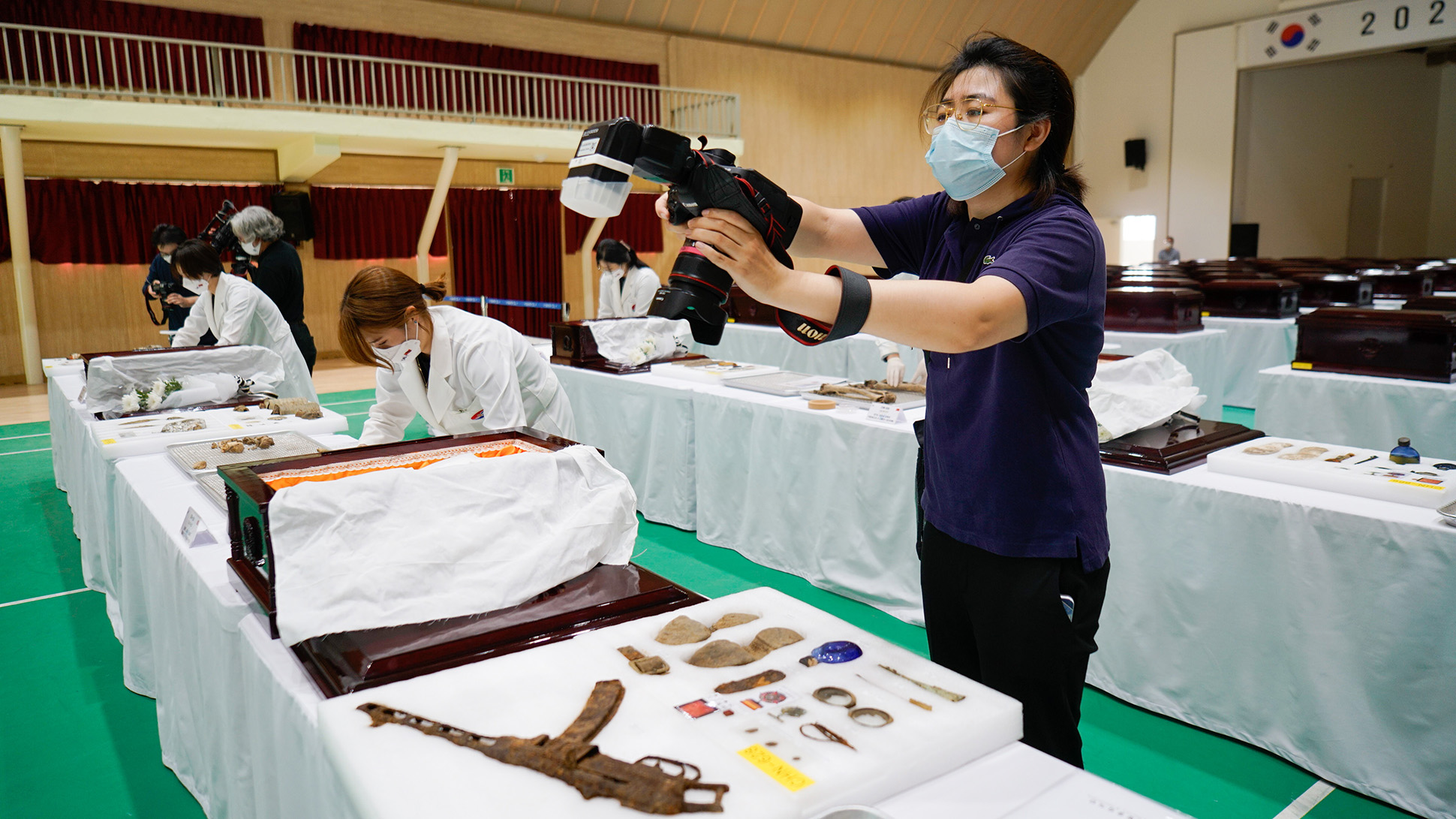 2013年,中韩两国达成了将在韩志愿军烈士遗骸归还中国的协议。从2014年到2020年,已经有716位烈士遗骸分七批陆续回到了祖国。从2018年被派驻韩国至今,我有幸拍摄了近三年的在韩志愿军烈士遗骸交接现场,见证了147位烈士遗骸踏上回家的路。