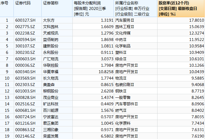 Wind数据显示,近12个月中,A股仅有1229家上市公司股息率超过1%,357家公司股息率超过3%,仅124家公司超过5%,整体低于同期银行理财产品收益率水平。