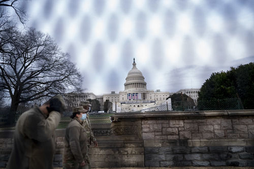 这是1月11日在美国首都华盛顿透过隔离围栏拍摄的国会大厦。新华社记者刘杰摄