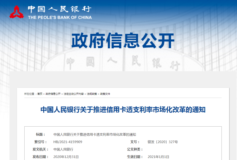 而值得关注的是,2020年10月,央行也曾在其发布的《中华人民共和国商业银行法(修改建议稿)》中提到,“商业银行可与客户自主协商确定存贷款利率”。对此,业界普遍认为央行取消信用卡透支利率上限和下限管理,是利率市场化改革的重要举措。