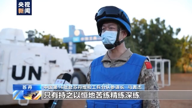 中国第16批赴苏丹维和工兵分队参谋长 马寅杰:在局势动荡的任务区执行维和任务,只有持之以恒地苦练精练深练,夯实战斗力生成的根基,切实锻造分队官兵能打仗、打胜仗的过硬本领,才能坚决履行好维护世界和平的神圣使命。