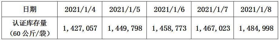 国际方面,阿拉比卡咖啡期价窄幅震荡,罗布斯塔咖啡期价盘整下行。截至1月8日,ICE(纽约)咖啡2103合约收报123.70美分/磅,较12月31日下跌4.55美分/磅,跌幅3.55%;ICE(伦敦)咖啡2103合约收报1318.00美元/吨,较12月31日下跌68.00美元/吨,跌幅4.91%。