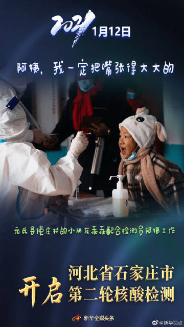 #河北抗疫快报#【石家庄启动二次核酸检测,萌娃们都好乖!】1月12日,河北省石家庄市启动第二轮全员核酸检测,当日累计采样3101776人。萌娃们在检测现场表现格外抢眼。