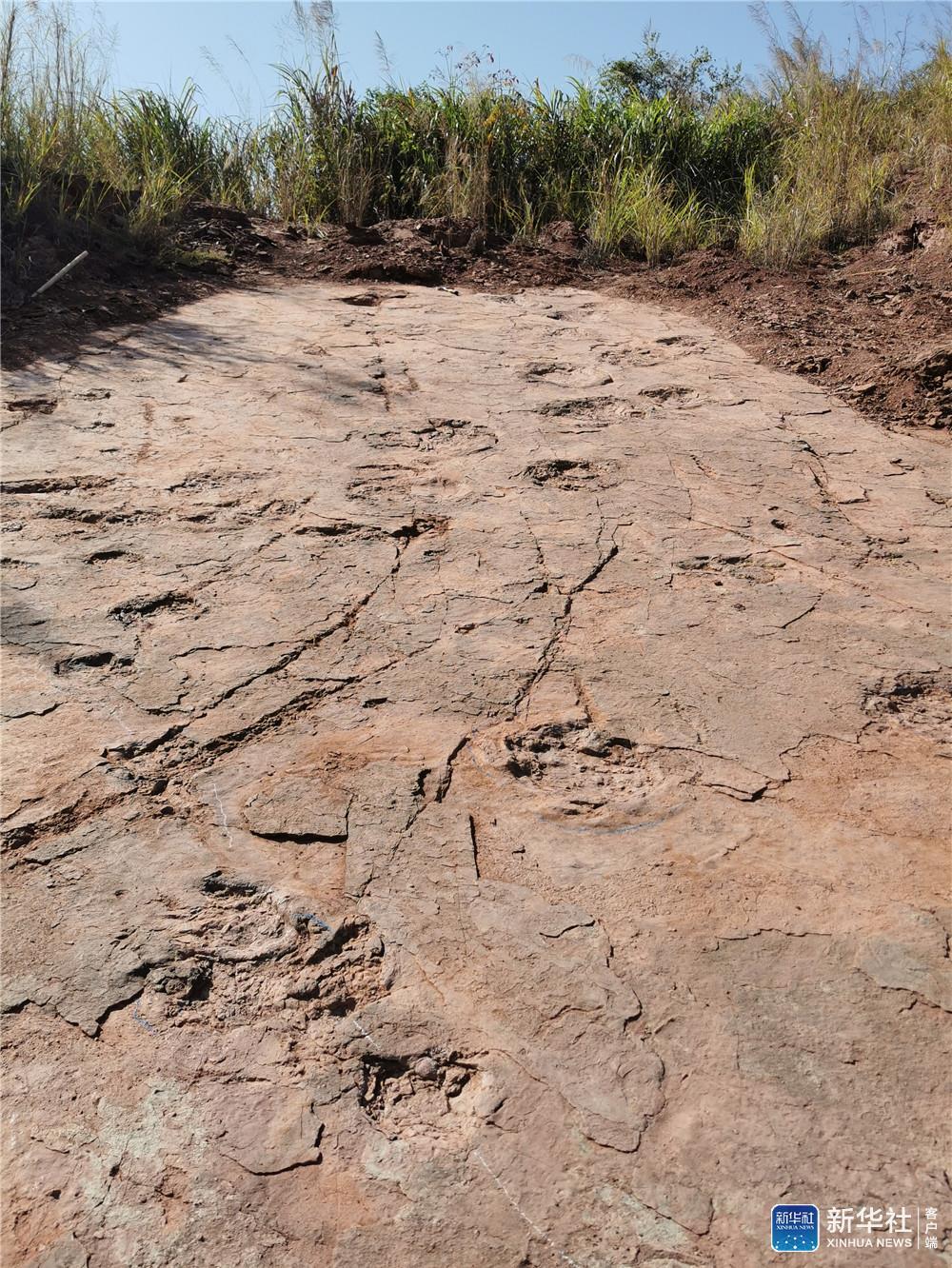 ↑恐龙足迹(2020年11月9日摄)。新华社发