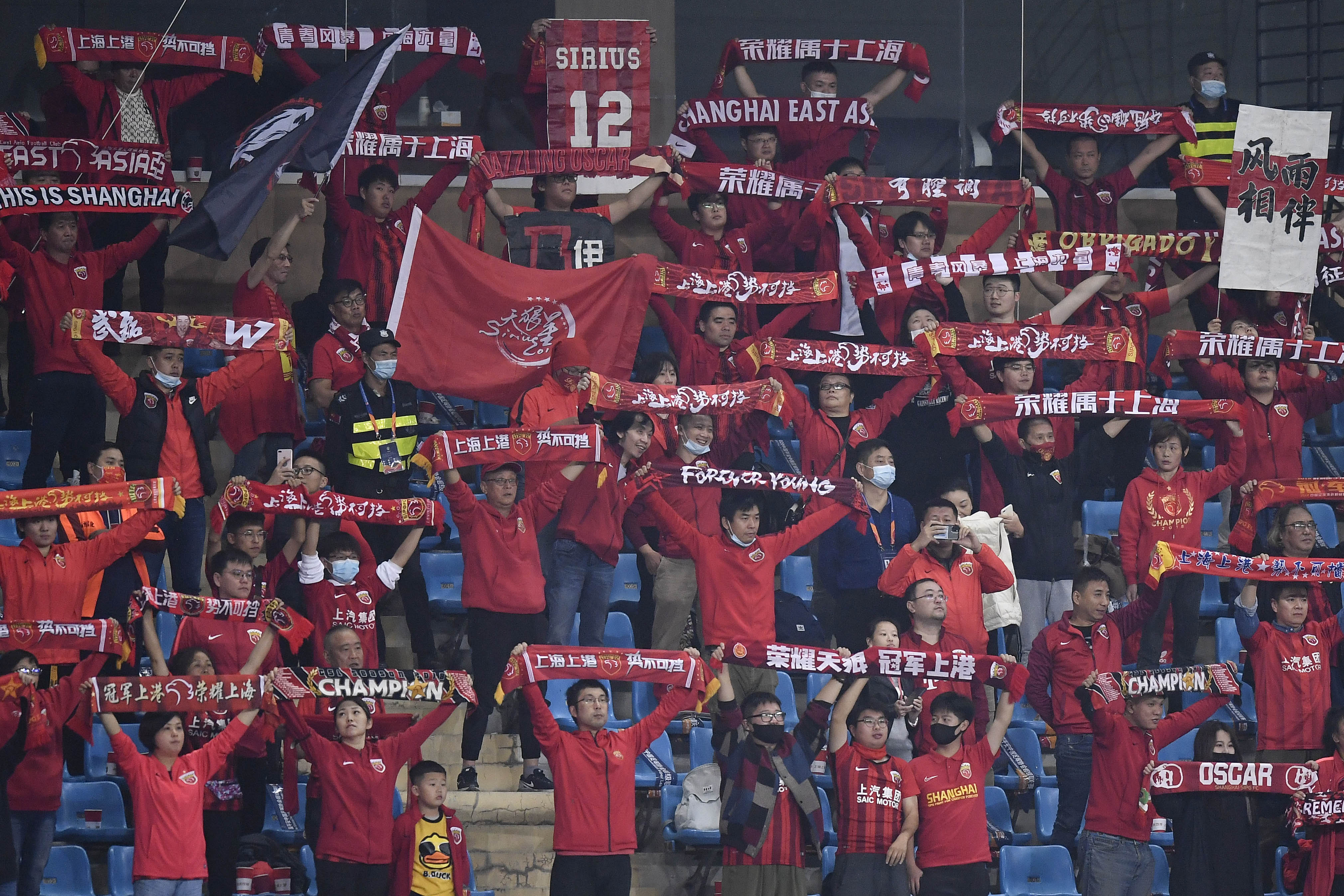 2020年11月7日,上海上港队球迷为球队加油助威。新华社记者许畅摄
