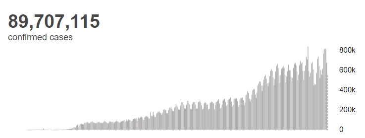 根据世卫组织最新实时统计数据,截至欧洲中部时间1月12日17时40分(北京时间1月13日0时40分),全球累计新冠肺炎确诊病例89707115例,累计死亡病例1940352例。12日全球新冠肺炎确诊病例新增566186例,死亡病例新增9371例。(总台记者 朱赫)