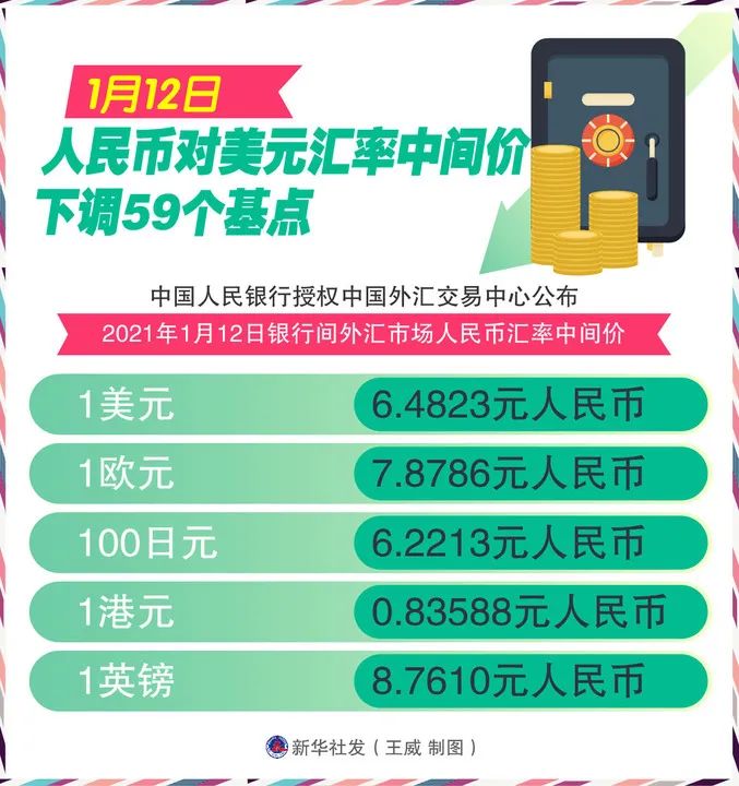 12日人民币对美元汇率中间价报6.4823,较前一交易日下调59个基点。