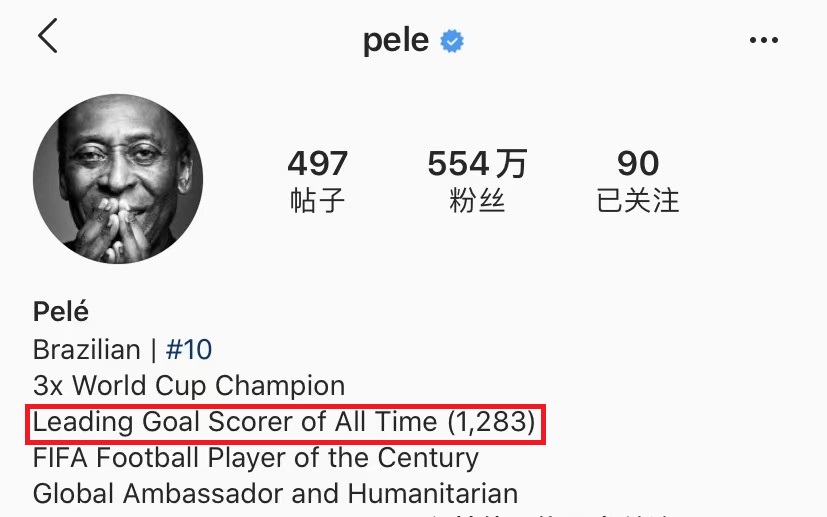 巴西老球王的社交媒体简介上写着: