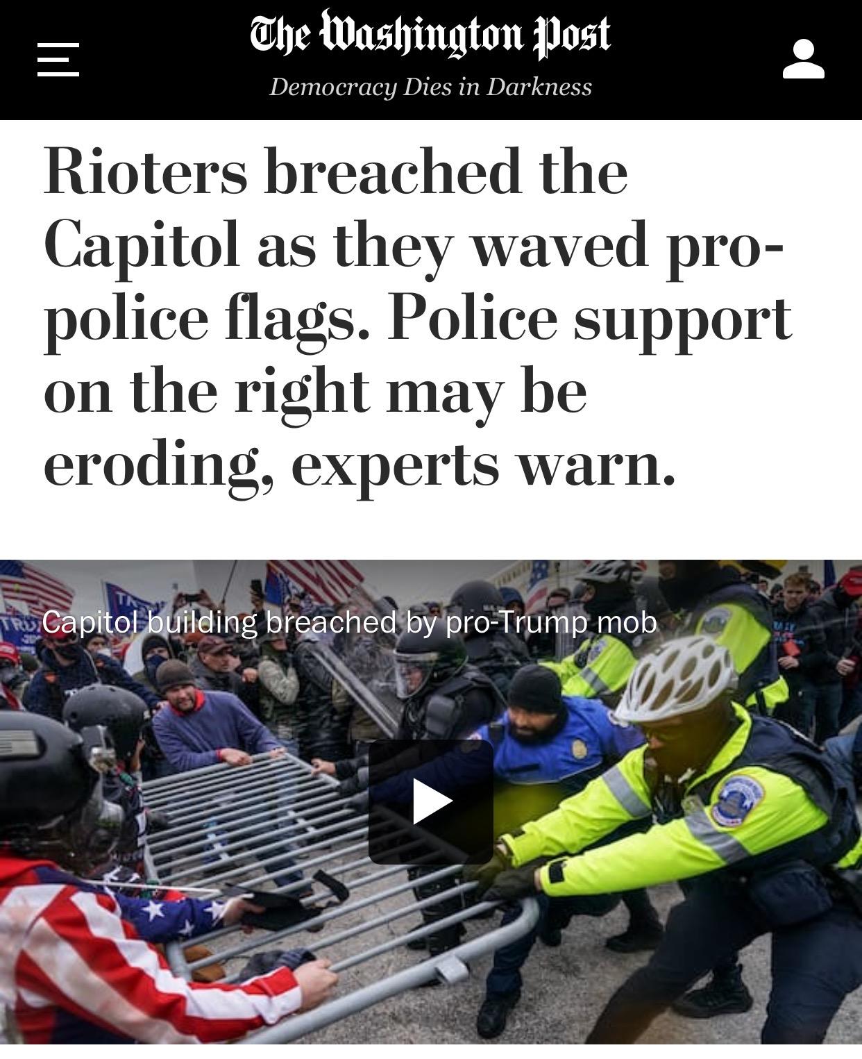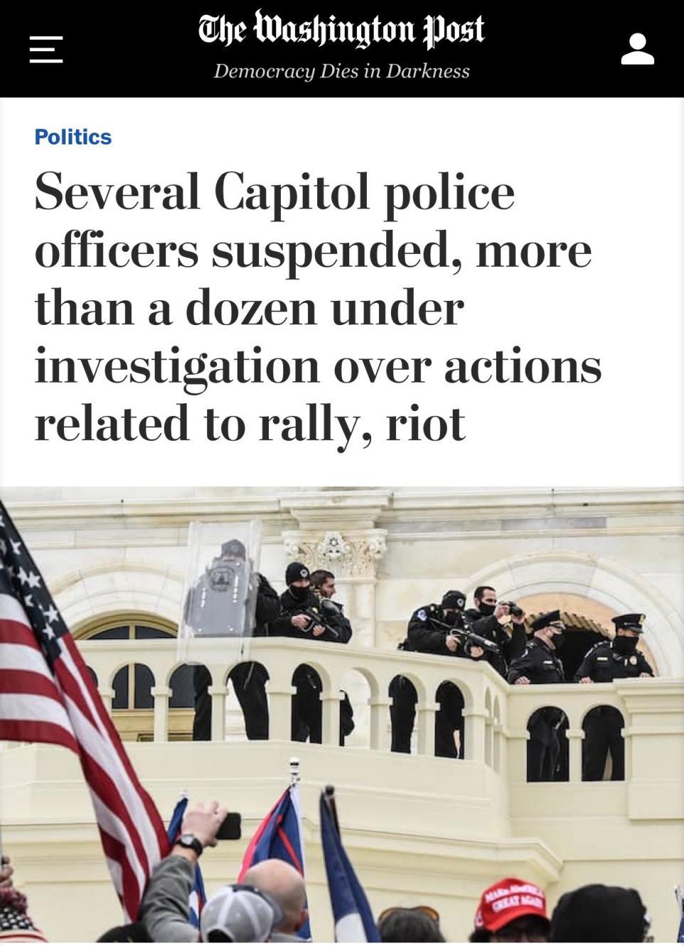 △《华盛顿邮报》报道,数十名与国会山遭抗议冲突事件相关的警察,或被停职,或接受调查