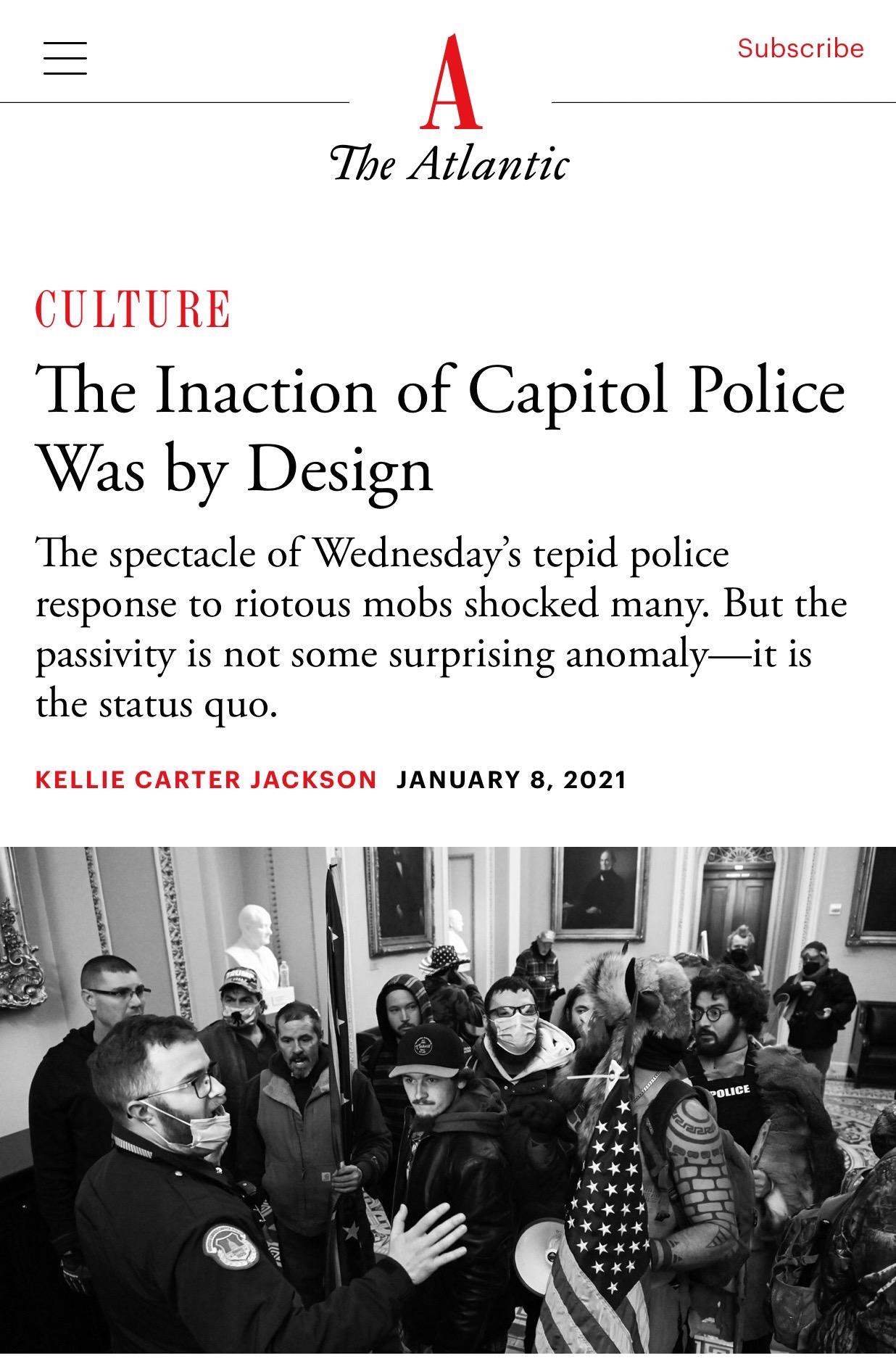 △《大西洋月刊》刊文批评,国会警察的不作为是制度的先天缺陷所造成