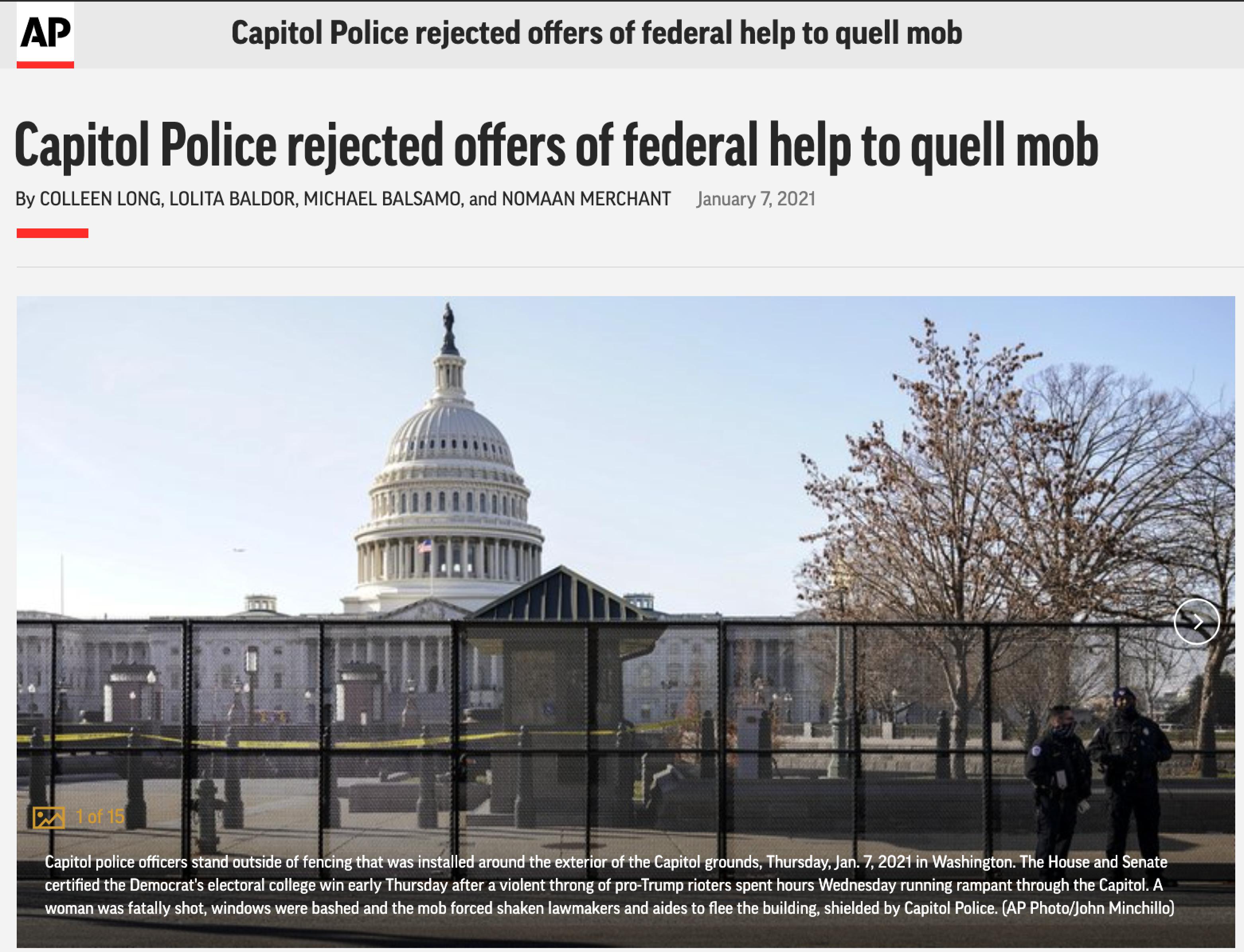 △美联社报道,国会警察拒绝了国民警卫队和联邦政府的帮助