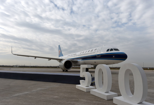 空客A320系列飞机亚洲总装线交付的第500架飞机。 新华社记者 赵子硕 摄