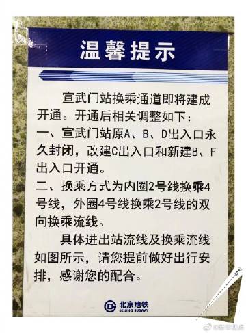 【北京地铁宣武门站ABD口,咋就关得这么任性?】北京地铁宣武门站ABD口永久封闭,导致部分乘客出站时间多花十几分钟。修建地铁的初衷,难道不是为了人们出行更便捷吗?让好端端一个出站口闲置,让乘客们绕来绕去,也不知是咋想的。#全民拍艾特你# #吐槽北京地铁宣武门站# @北京地铁