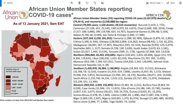 据非洲疾控中心统计数据,截至当地时间2021年1月13日9时,非洲大陆累计确诊新冠肺炎病例达3107979例,累计死亡74444例,累计康复2538888例。(总台记者 吴婷)