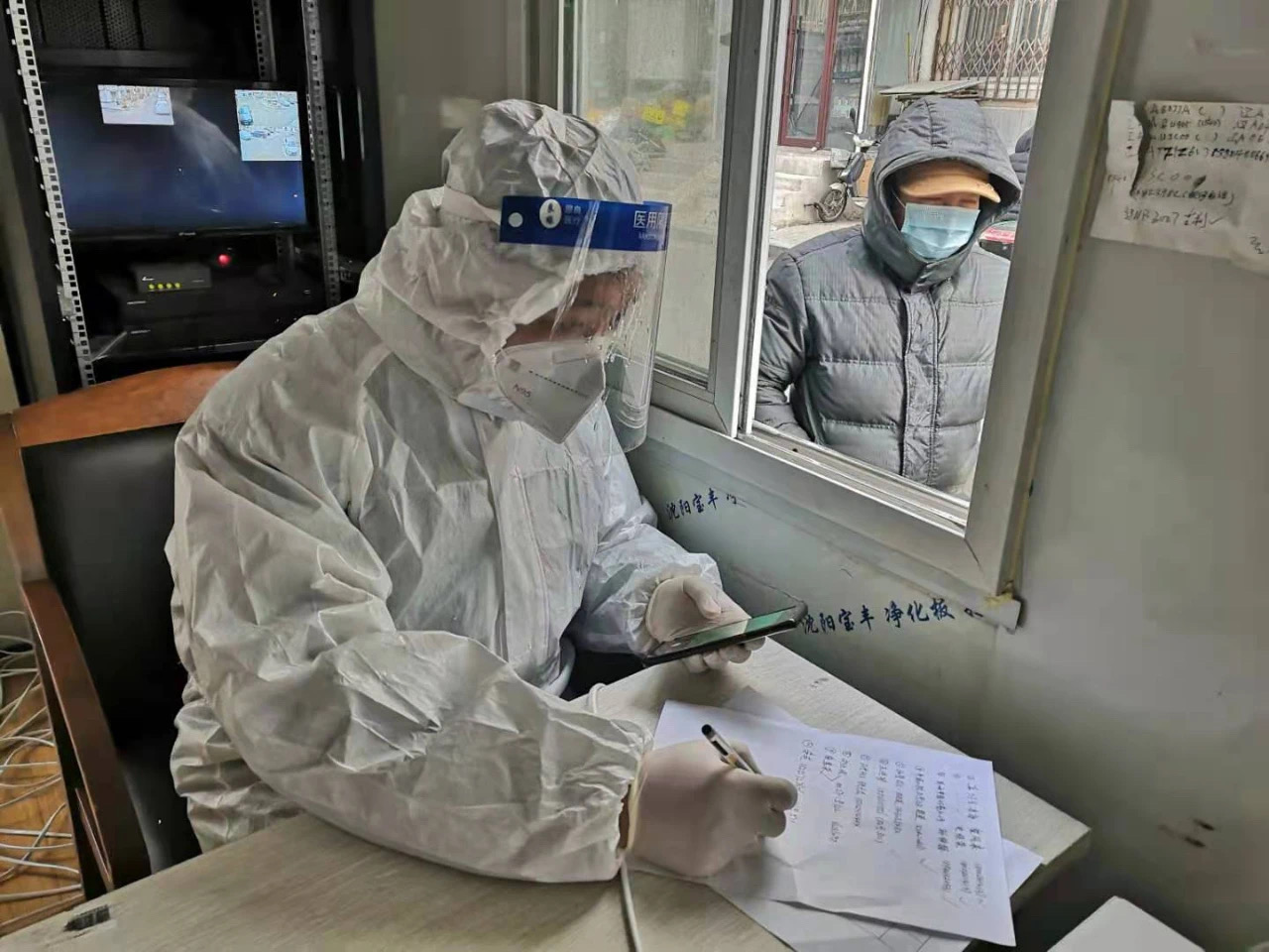 李宏涛是沈阳市皇姑区华山街道中光社区的一名工作人员。自2020年12月31日至今,他一直坚守在抗疫一线,未曾回过家。他的妻子魏雪,在2020年12月26日作为机关第一梯队志愿者到明廉地区支援,参与疫情中风险地区核酸检测录入、现场消杀、心理疏导等一线工作,每天穿着防护服工作10多个小时。非常时期,夫妻俩成了并肩战斗的“战友”。