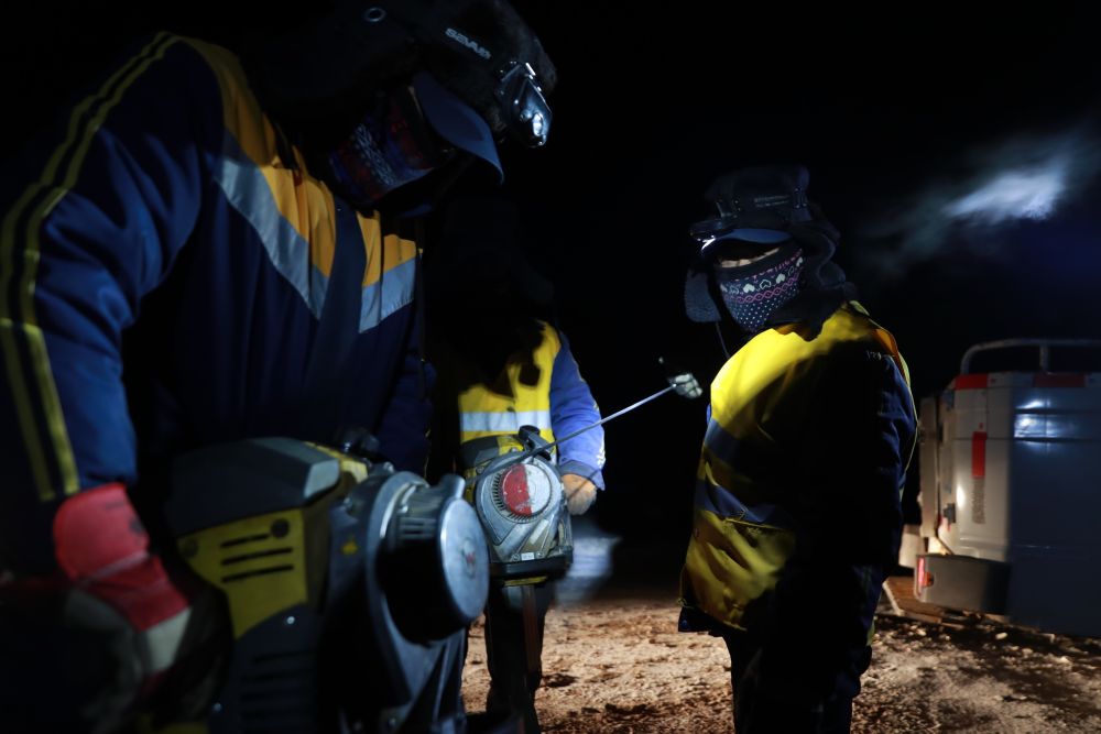 每次作业,早上5点就要出发,冬天的戈壁滩,最低气温降到零下30摄氏度以下,哈气成霜。平时作业6个小时,遇到极端天气,工作10小时也是常有的事。“回去的路上,只有鼾声,没有说话声。”车间主任谢树山说。
