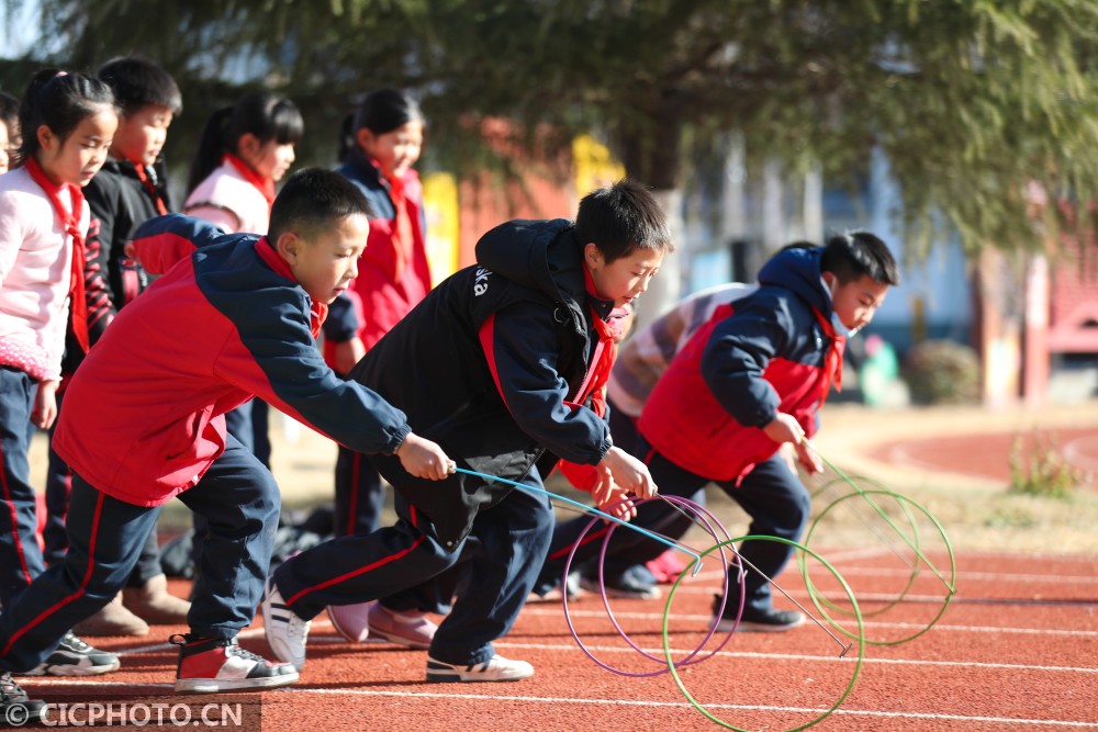 以上图片:2021年1月13日,浙江省湖州市德清县干山中心学校的学生利用大课间时间进行体育锻炼。CICPHOTO/王正 摄