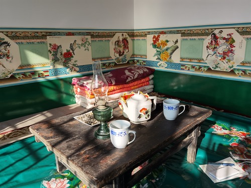 李秀全,生于二十世纪五十年代,原平炕围画文化艺术发展有限公司董事长。“我们这代人,对炕围画有一种特殊的情怀。”他说,当地人翻盖新房,给工人提出的唯一要求就是留下炕围画。李秀全家中两套炕围画均保存完好,其中一套还是在他结婚时,母亲特意请人画制。“当年在原平插队的知青回来后,也专门跑到老乡家中去找炕围画,那是他们最惦记的原平记忆。”