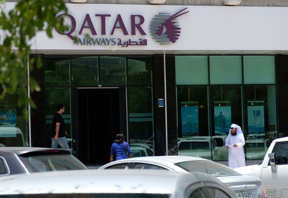2017年6月6日,在卡塔尔首都多哈,人们从卡塔尔航空公司总部前走过。(新华社发,尼库摄)