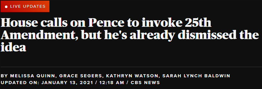 当地时间12日,民主党人占优势的美国国会众议院通过决议,要求副总统彭斯动用美国宪法第25条修正案罢免总统特朗普。但彭斯拒绝了这一要求,认为应“避免采取会进一步分裂和煽动当下激情的行动”。这意味着众议院最快将于当地时间13日正式投票决定是否让特朗普成为美国历史上第一位两次被弹劾的总统。