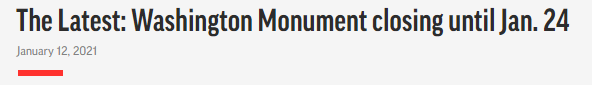 连冲击国会事件的主要当事人——总统特朗普也在各方压力下有所动作。他于当地时间11日宣布,首都地区自即日起进入紧急状态,一直持续至新总统就职典礼过后的1月24日。目前,通往华盛顿纪念碑的公共通道已限时关闭。