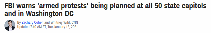CNN获得的一份内部公告也显示,美国联邦调查局(FBI)收到消息称,在新总统1月20日就职典礼的前几天,美国所有50个州的议会大厦和首都华盛顿特区都可能爆发“武装抗议”。