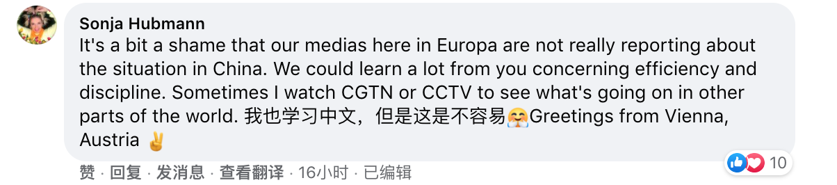 一位奥地利网友则从中看破了西方媒体给自己编织的信息牢笼:“我们欧洲自己的媒体都不怎么报道中国这种新闻,这太可耻了。我们可以从你们那里学到很多提升效率和加强规范的经验。”