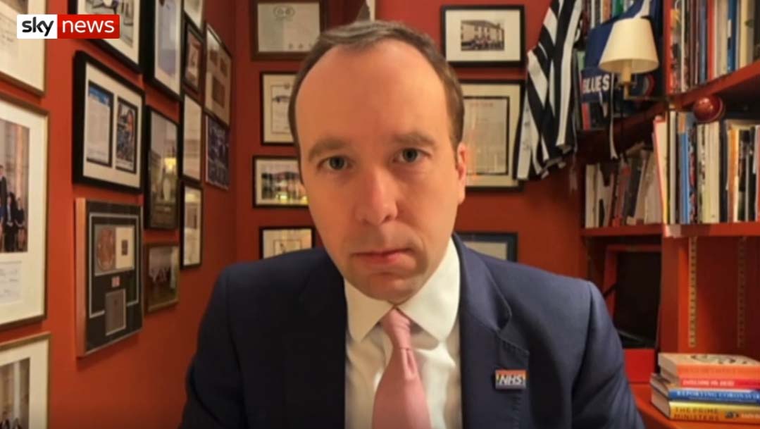 △英国卫生大臣汉考克(图片来源:采访视频截图)