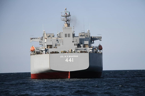 伊朗“莫克兰”号后勤舰参与当天演习。据了解,作为伊朗海军最大的“直升机航母”之一,莫克兰海上基地舰将为该国海军在国际水域的作战舰队提供后勤保障支持。伊朗塔斯尼姆通讯社表示,该舰艇可搭载7架直升机并携带10万吨燃料和补给,可在不靠岸的情况下航行1000天。此外,它还配备了最新数据收集系统,进行信息的处理和分析并将其提供给海岸指挥控制中心。