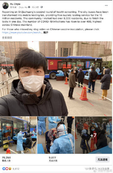 【石家庄全员免费测核酸,海外网友一下被"点燃了"】1月12日,河北省石家庄市全面启动第二轮全员核酸检测。新华社记者徐泽宇实地探访,将当地社区组织检测的报道上传到自己的海外社交媒体“脸谱”账号上,海外网友一下被“点燃了”。戳链接网页链接